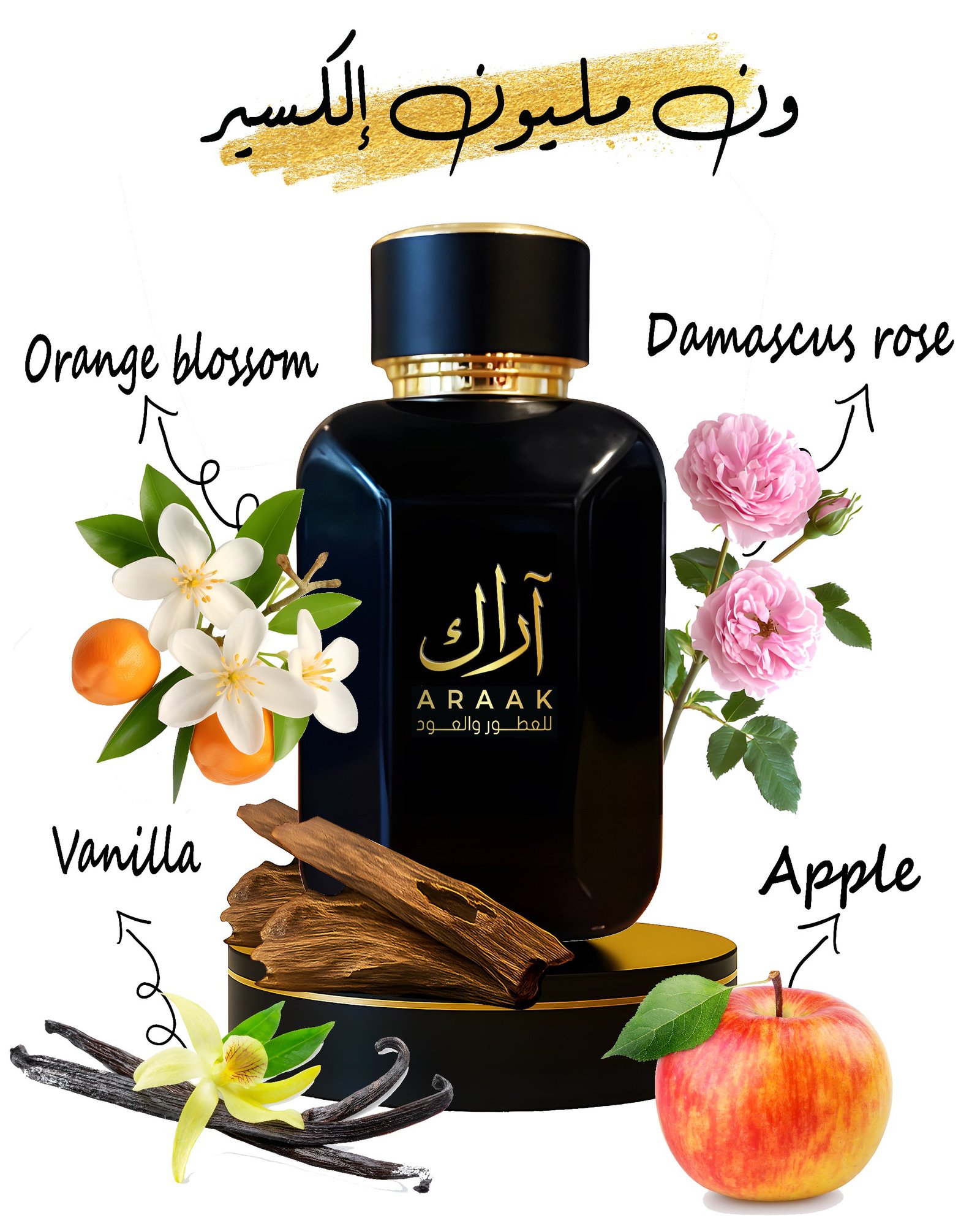 ون مليون إلكسير… جوهرة عطرية تجسد الرفاهية المطلقة. توليفة فريدة تبدأ بتفاح متألق ودافانا عطرية، تتناغم مع قلب غني من الورد الدمشقي والأوسمانثوس الحسي. وفي القاعدة، يكتمل السحر بخشب الأرز والفانيليا السوداء، ليصنع عطراً مكثفاً، ساحراً، وخالد الأثر.